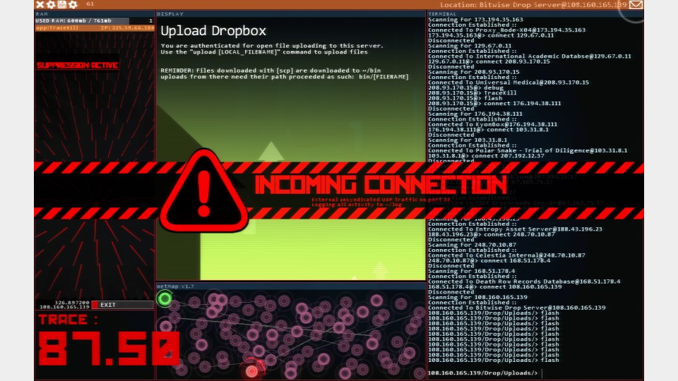 Hacknet is a terminal-driven hacking game with competitive multiplayer, a fully internally-consistent network simulation and a realistic, accurate interface. It follows the story of recently deceased hacker "Bit", whose death may not be the 'accident' the media reports. Hacknet challenges the idea of the traditional protagonist. No one's standing in as your avatar, it's just you and your computer - play for yourself, make your own decisions, and see the world react to you. Don't be reckless though - it's more real than you think.